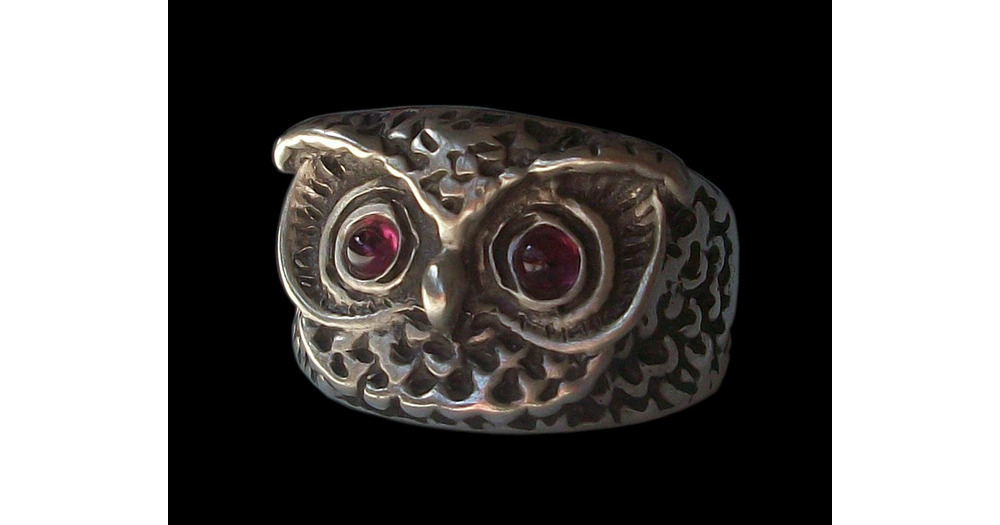 Owl Ring, Sterling Silver Owl Ring, Garnet Eyes, All Sizes, Silveralexa