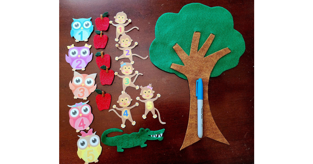 5 red apples & Owls felt board stories combo//felt board stories set//farm theme apples//countin