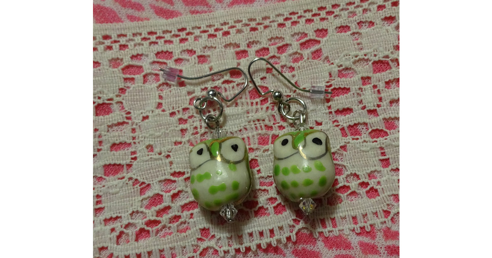 Light Green Ceramic Owl Earrings (E68)