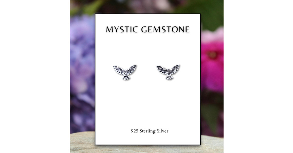 Sterling Silver Flying Owl Stud Earrings: Bird Jewelry