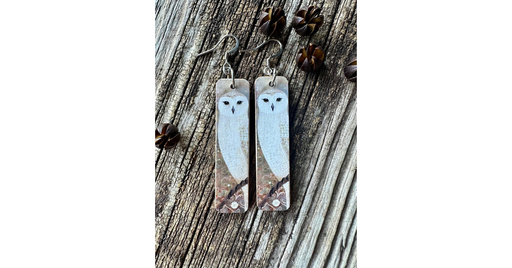 Sweet Owl Print Earrings, REVERSIBLE, Sterling Silver or Stainless Wire, Gift, Handmade