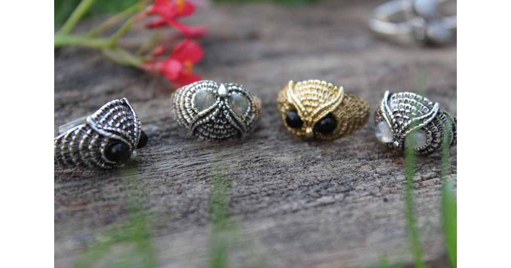Owl Ring,Moonstone Ring,Stone Ring,Labradorite Ring,Tiger Eye Ring,Adjustable Brass Ring,Ethnic Bras