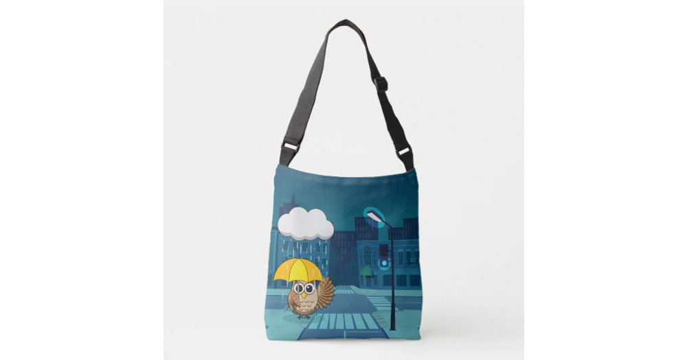 Cute Owl with Umbrella on Rainy Day Crossbody Bag
