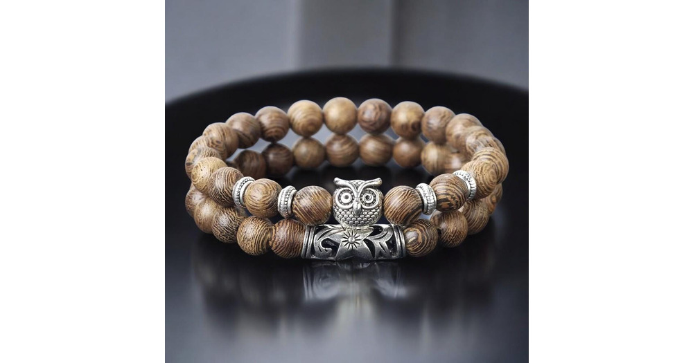 Couples Owl Bracelet Set • Natural Stone Beaded Distance Jewelry