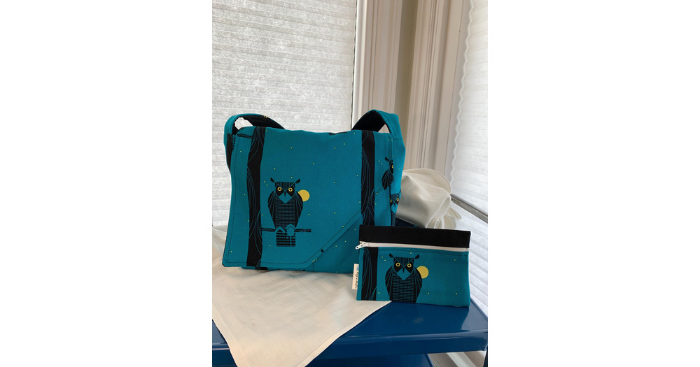 Charlie Harper Owl Canvas Fabric Reversible Crossbody Bag with Matching Zip Pouch
