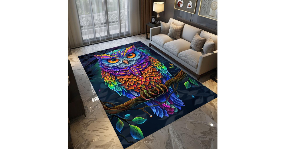 Owl print rug, Bright color rug, Modern livingroom rug, Bedroom rug, Entrance area rug, Non-slip rug