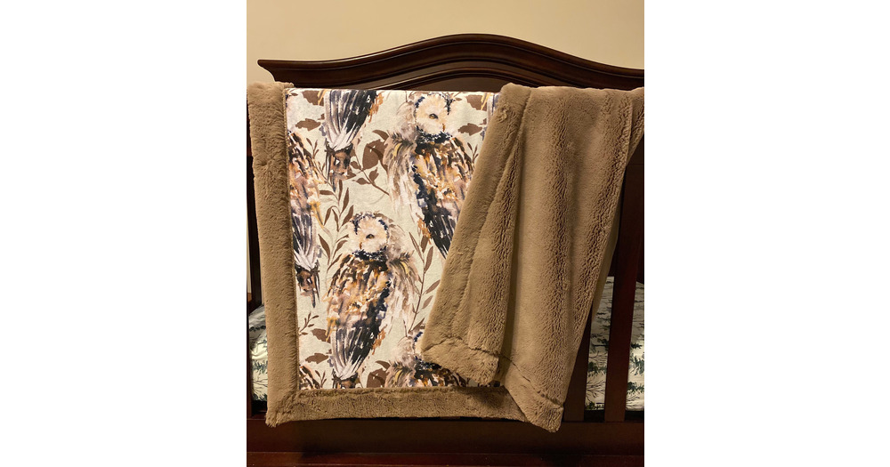 Barred Owl Minky Blanket, READY TO SHIP, Bunny Minky Blanket, Designer Minky, Woodland, Leaves, Natu
