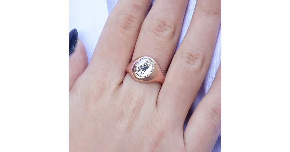 Silver Owl Signet Ring: Engraved Enamel Good Luck Unisex Ring
