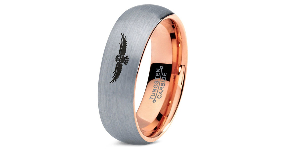 Flying Owl Bird Ring, Mens Wedding Rings Tungsten, Rose Gold Tungsten Ring For Men, Silver Gray Ring