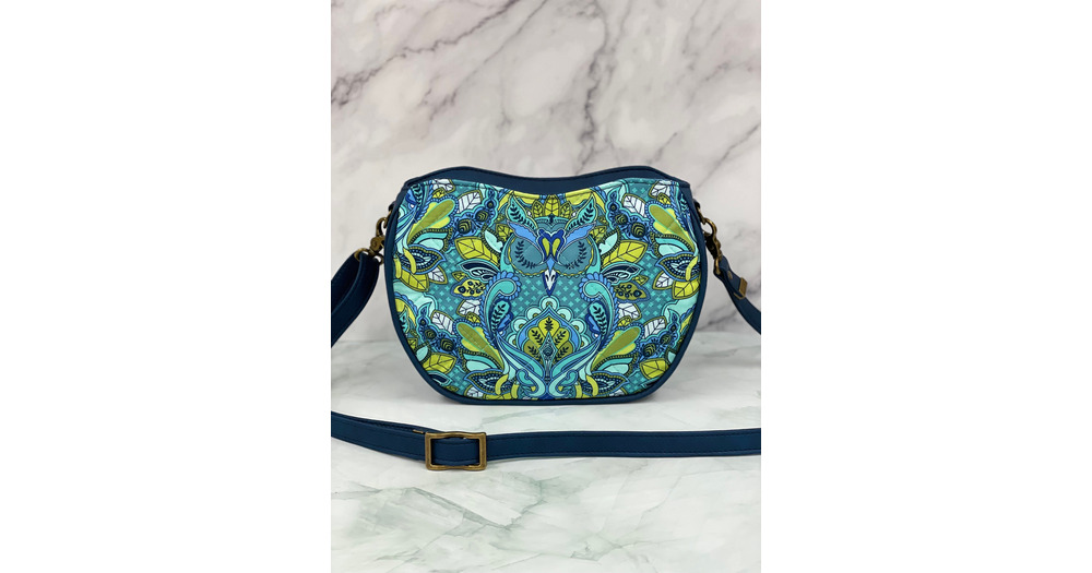 Tula Pink Owl Print Crossbody Bag: Navy Blue Quilted Purse