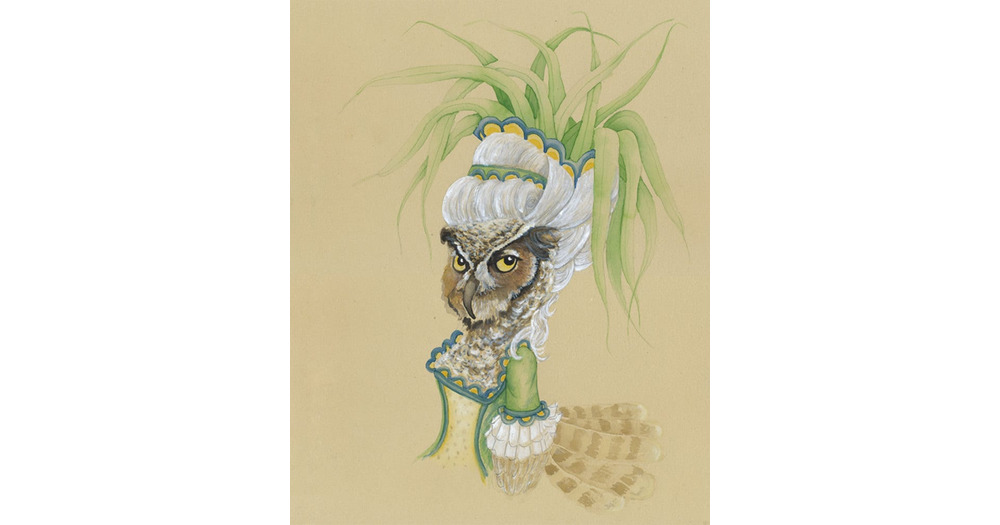 Owl Painting, Rustic Owl Gift, French Animal Alphabet Letter H, Green Beans Gift for Birder, Cottage