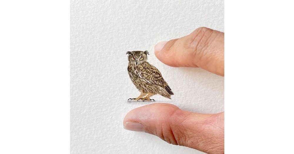 Eagle owl, original miniature painting, watercolour, owl artwork