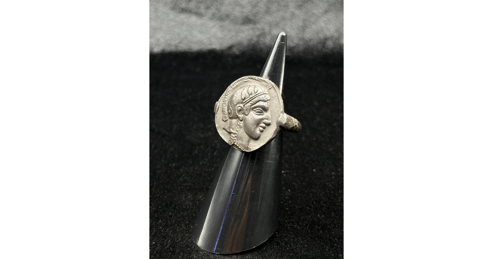 Rare Bronze Ring with Greek Owl Tetradrachm Coin - Size 8.5 US