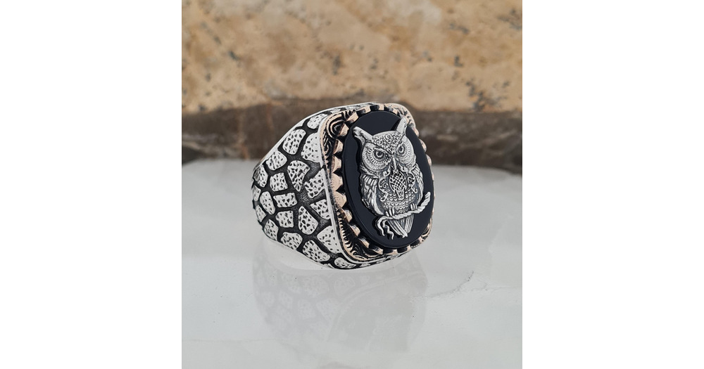 Handmade Sterling Silver Owl Ring: Black Onyx Wisdom Bird Jewelry
