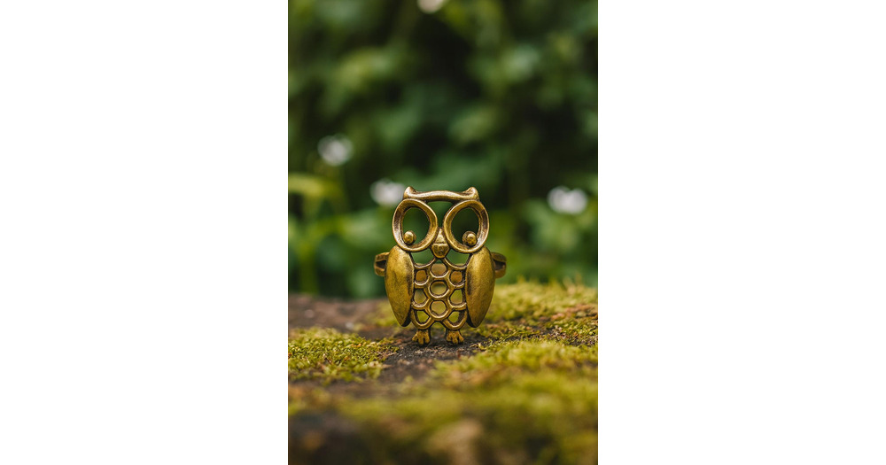 Vintage Style Brass Owl Ring - Adjustable Bird Jewelry - Handmade Owl Wrap Ring for Wisdom & Nat