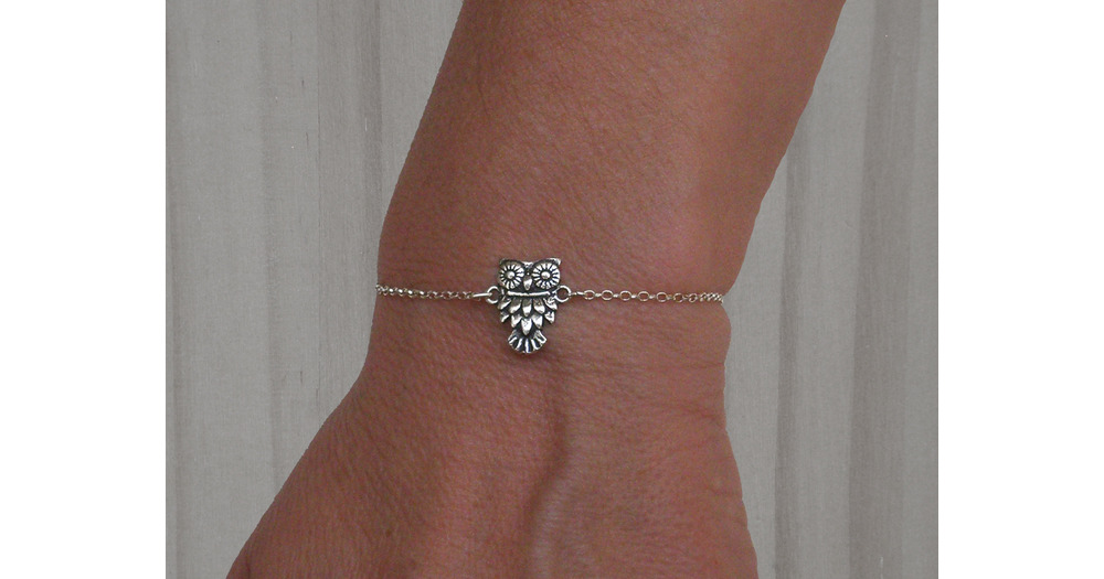 Sterling silver owl bracelet, Silver bracelet, Lucky charm, Owl bracelet, Adjustable bracelet, Amule