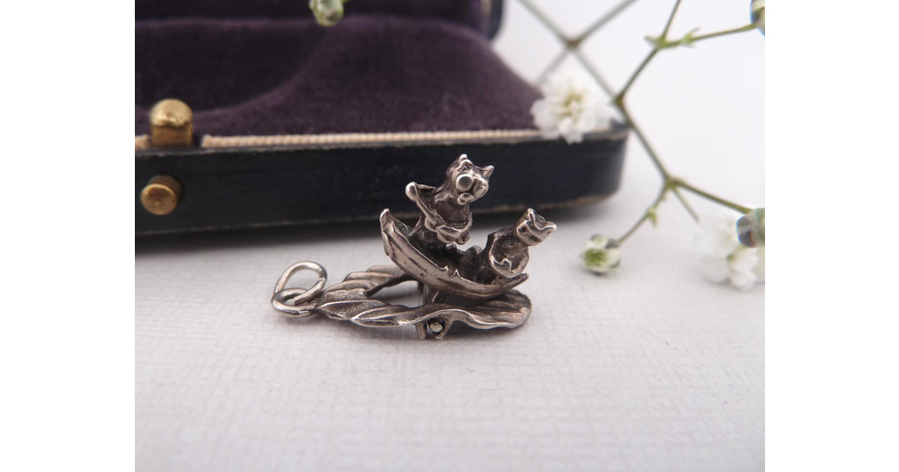 CHIM Vintage Sterling Silver Owl & Pussycat Boat Charm  Rocking Wave Mechanical Nursery Rhyme
