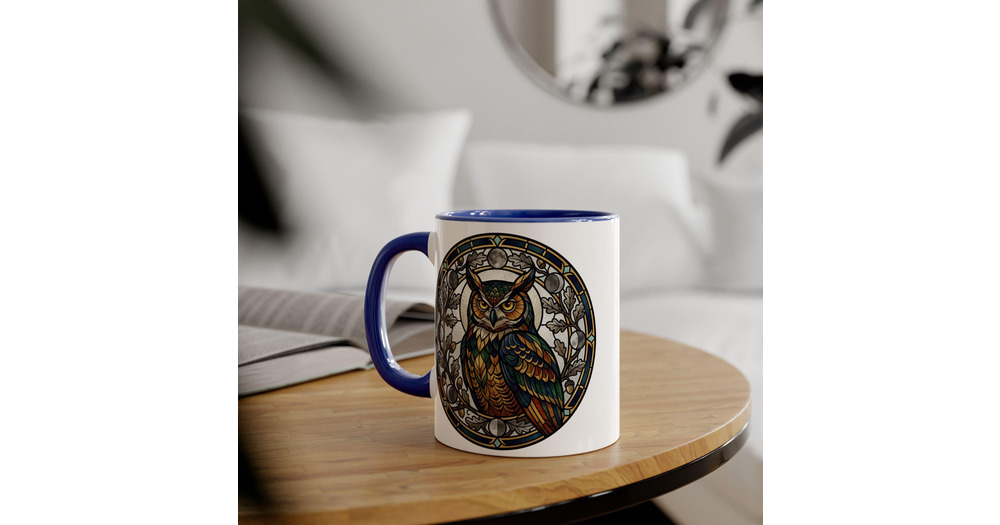 Stained Glass Owl Mug, Accent Coffee Mug 11oz