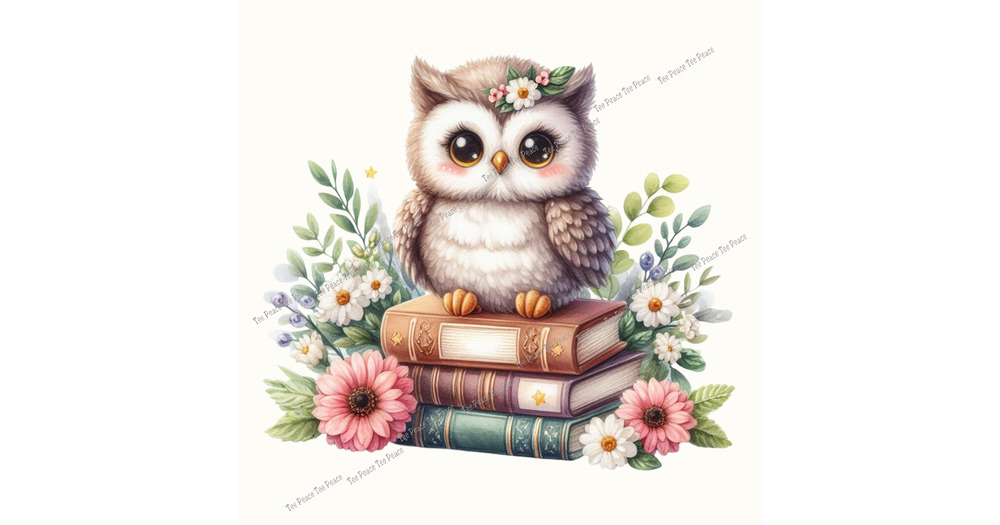 Book Owl Fabric Panel, Quilt Sewing Square, Multiple Sizes, fc6d