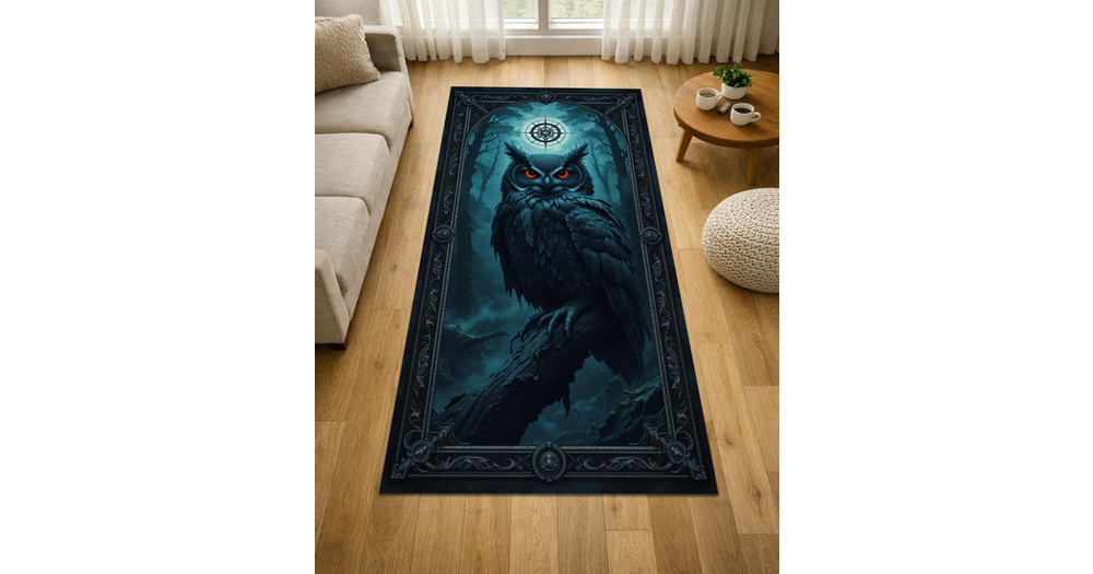 Owl Runner Rug, Dark Gothic Hallway Carpet, Mystical Forest Design, Celestial Home Decor