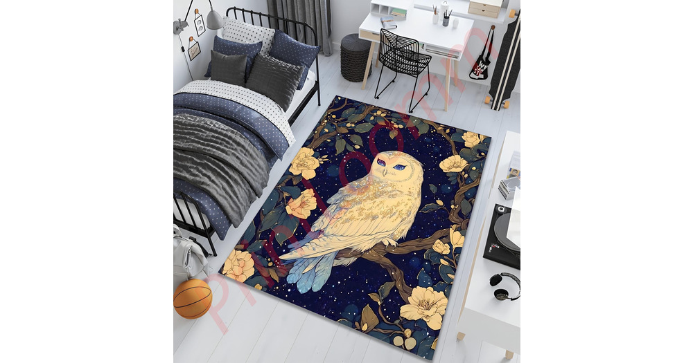 Owl Area Rug, Mystical Night Bird, Floral Accent Rug