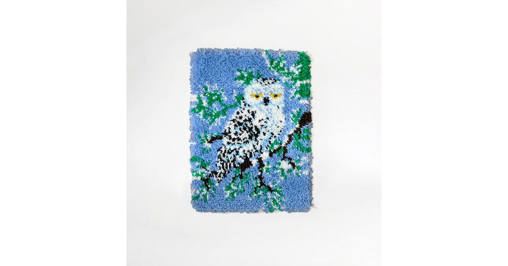 Vintage Owl Latch Hook Rug: Kitsch Wool Wall Hanging, 1960s Decor