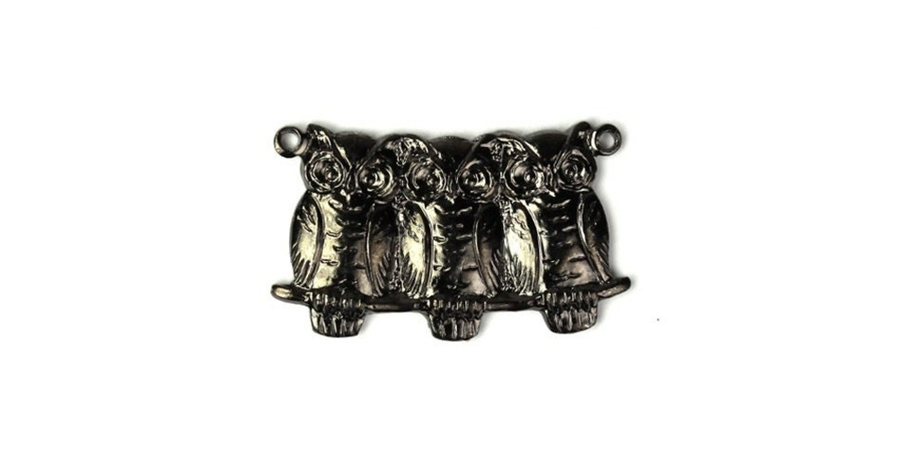 Three Owls 2 Loops Charms Bird Pendants Gunmetal (3) CP089