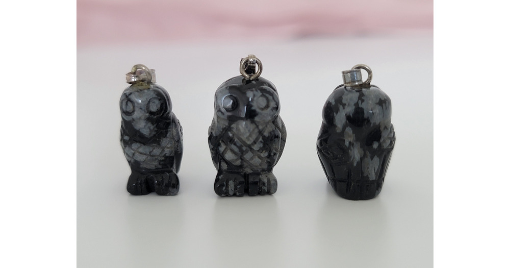 Tiny Snowflake Obsidian Owl Mini Pendant | Natural Crystal Charms
