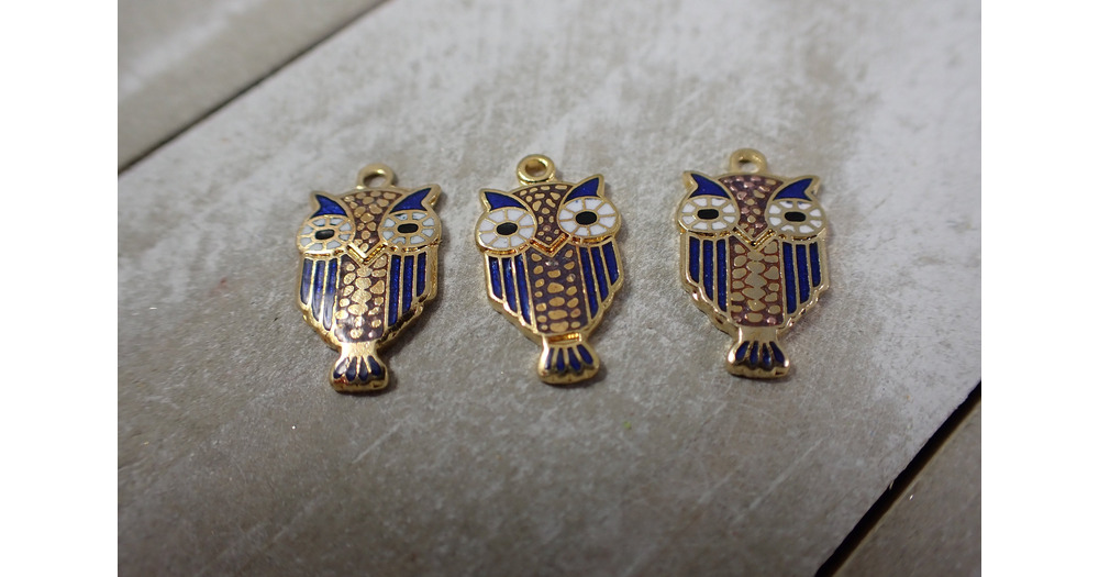10 Pcs Dainty Enamel Owl Charm - Blue Gold White - Small Pendant Charms - 17x10x2mm Small Dainty Ena