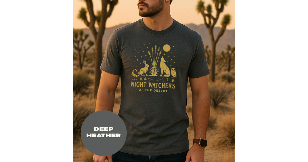 Desert Night Watchers Graphic Tee: Coyote, Owl, Scorpion - Boho Style