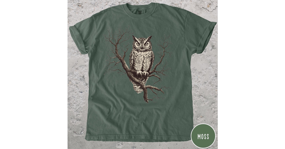 Vintage Owl Comfort Colors Tee: Gothic Forestcore Shirt
