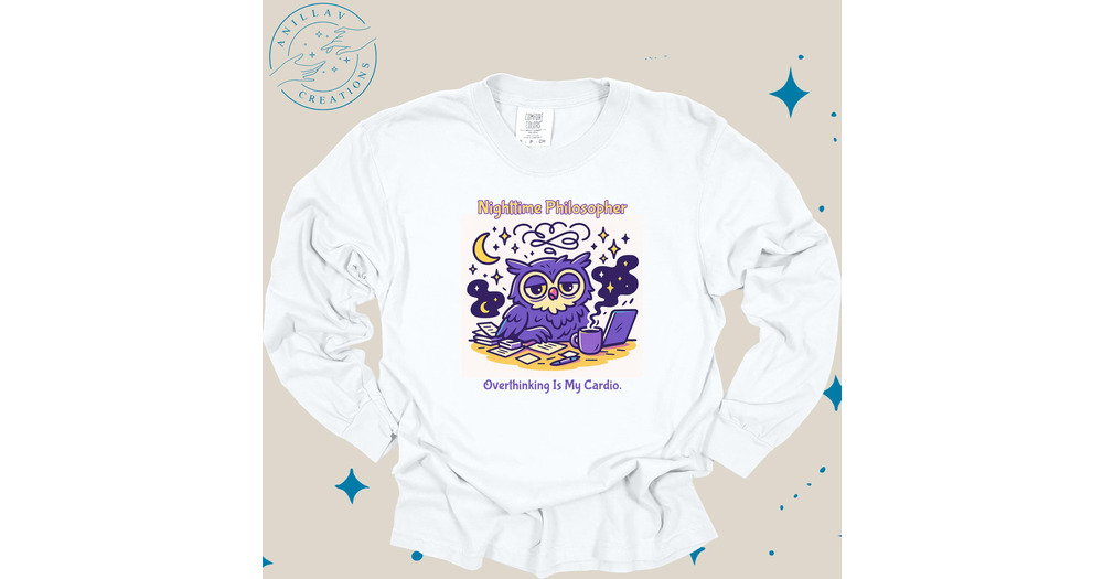 Long Sleeve T-Shirt: ADHD Owl - "Overthinking Is My Cardio." Mental Health Shirt