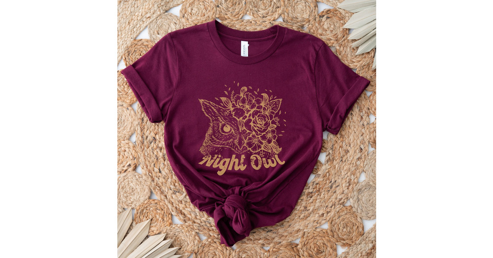 Night Owl T-Shirt, Retro Owl Shirt, Trendy Summer Tees, Gift for Her, Boho Floral Shirt, Owl Lover S
