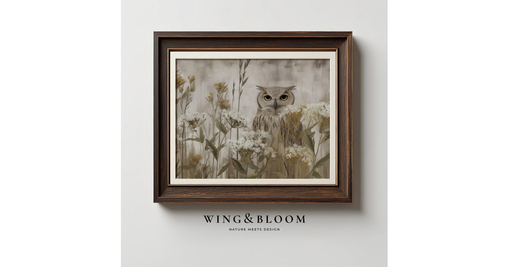 Barn Owl Watercolor Wall Art Neutral Wildflower Bird Print Soft Botanical Decor Rustic Nature Artwor