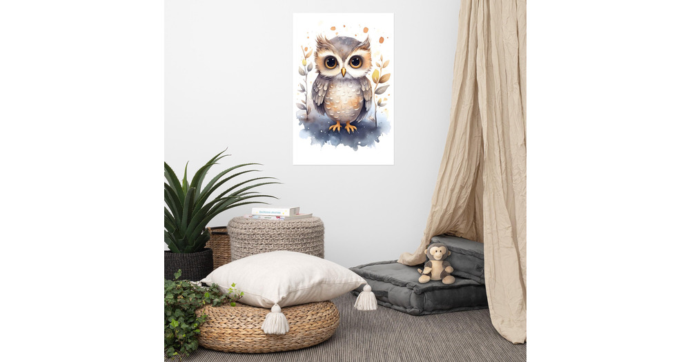 Watercolor Owl Print | Baby Nursery Wall Art