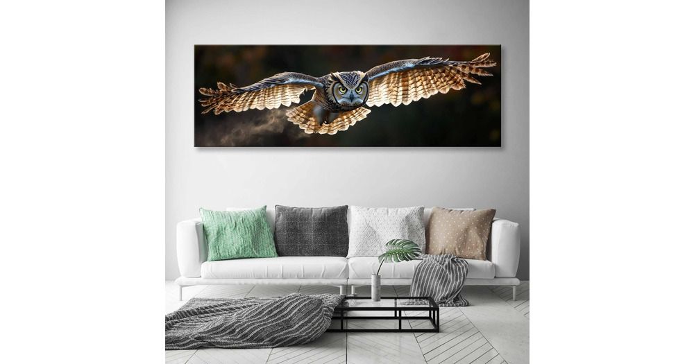 Owl Closeup Flying Canvas Print - Ornithology Wall Decor - Natural Poster - Long Horizontal Piece of