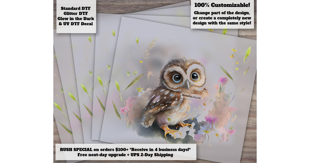 Owl Floral Watercolor Heat Transfer DTF Ready to Press