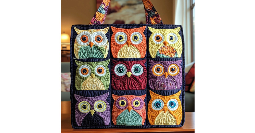 Owl Buddies Quilted Tote Bag, Cute Owl Tote, Forest Animal Bag, Woodland Tote, Owl Lover Gift, Natur