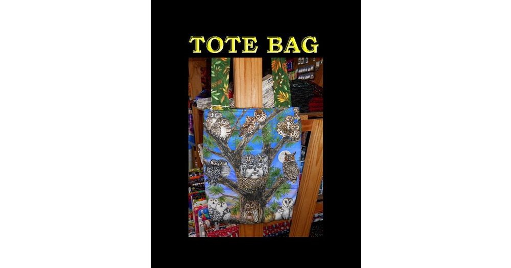 Owl Bag/owl families in a tree/Tote/Quilted Bag/Purse/green leaf foliage back/inside pocket brown vi