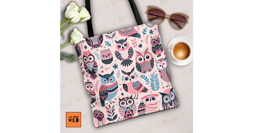 Owl Tote Bag, Retro Owl Market Bag, Book Lover Tote, Cute Everyday Shopper, Cottagecore Gift for Her