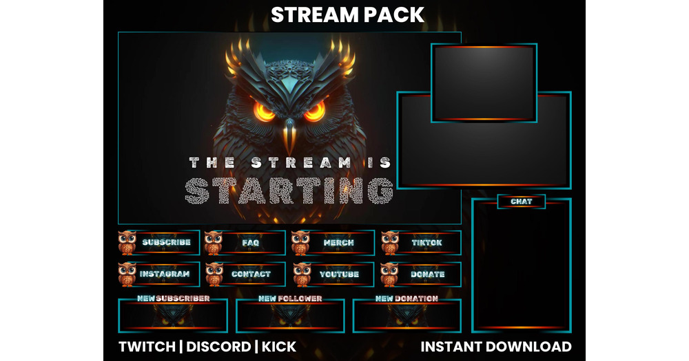 Animated Twitch Stream Pack | Metallic Owl Stream Pack | Animated Screens | Webcam Overlay | Owl Twi