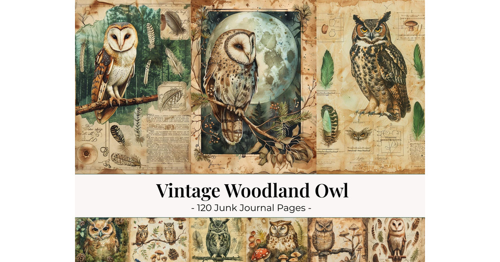 120 Vintage Woodland Owl Junk Journal Pages, Forest Animal Printable Ephemera Kit, Nature Scrapbook
