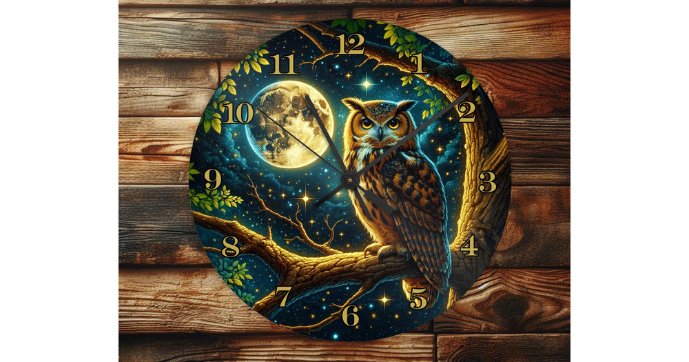 Moonlight Owl - Wall Clock Design - With Numbers - PNG Design - Digital Download