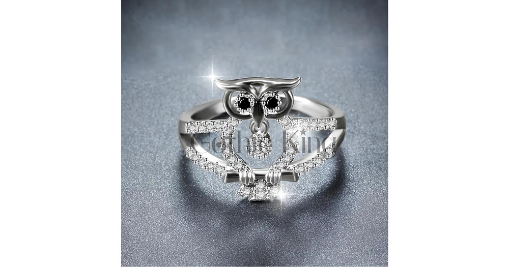 Gothic Owl Ring: 0.40 Carat Black Sapphire, Sterling Silver