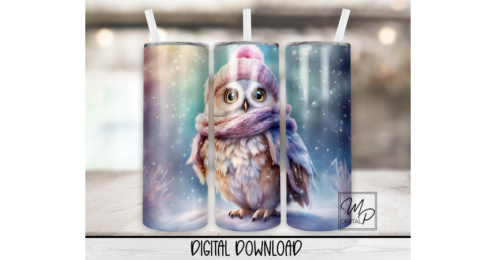 Winter Owl 20oz Skinny Tumbler Sublimation Design (Digital Download)