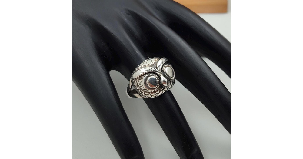 Oxidized Sterling Silver Owl Ring: Vintage Boho Animal Jewelry