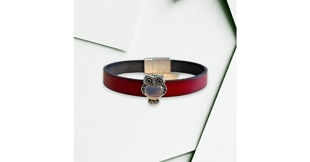 Owl sliding Charm Bracelet 10mm Leather Band with strong magnetic clasp (Zamak)