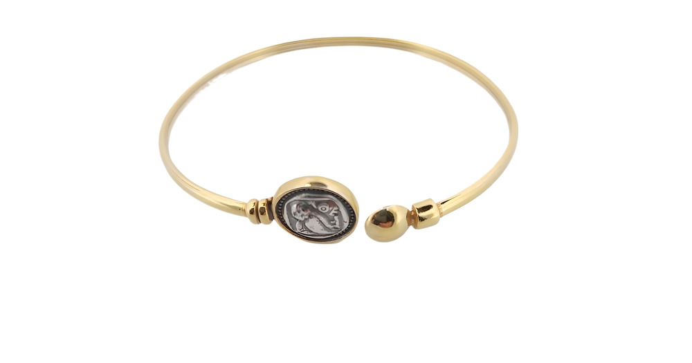 Owl Bracelet, Silver Gold Plated Bangle, Greek Mythology Inspired, Adjustable Bangle