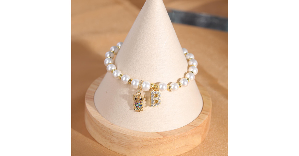 Owl Initial Pearl Bracelet – Personalized Custom Text Bracelet – Letter Charm Jewelry &n