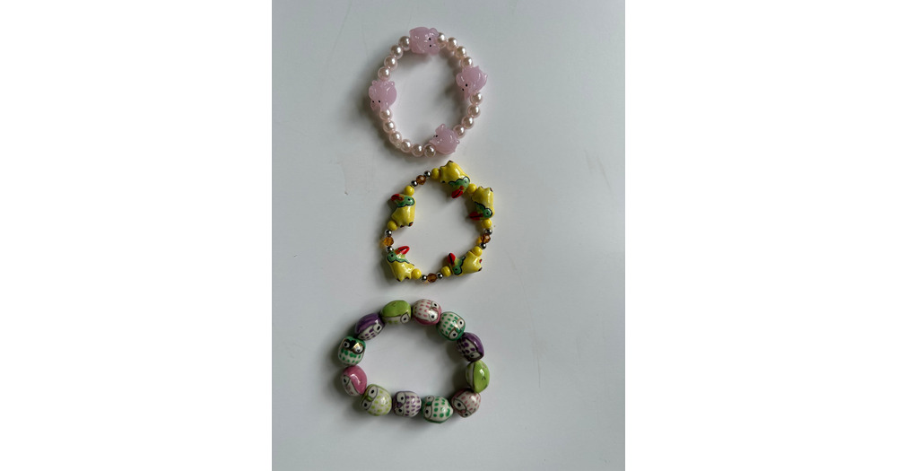 New Parrot Owl Pig Animal Porcelain Beads Stack of 3 Bracelet